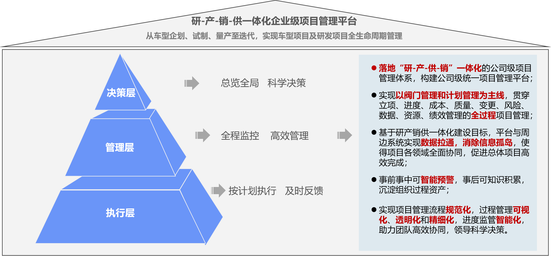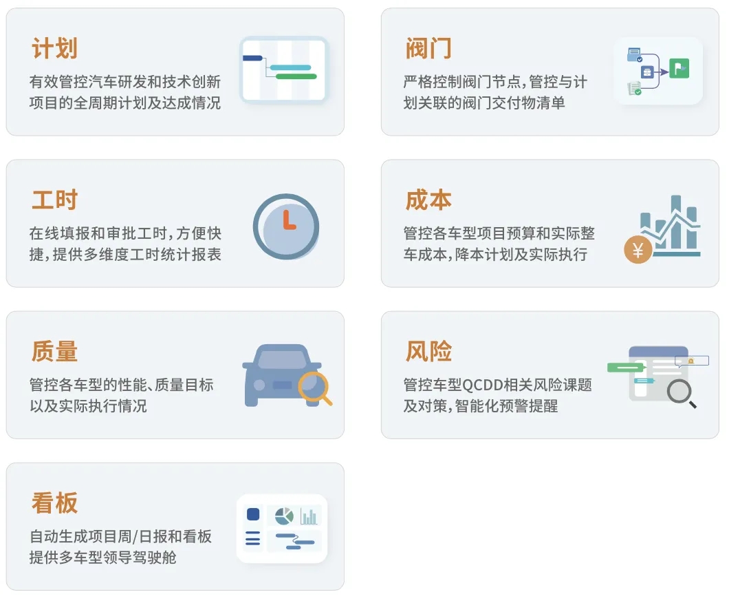 1.计划:有效管控汽车研发和技术创新项目的全周期计划及达成情况