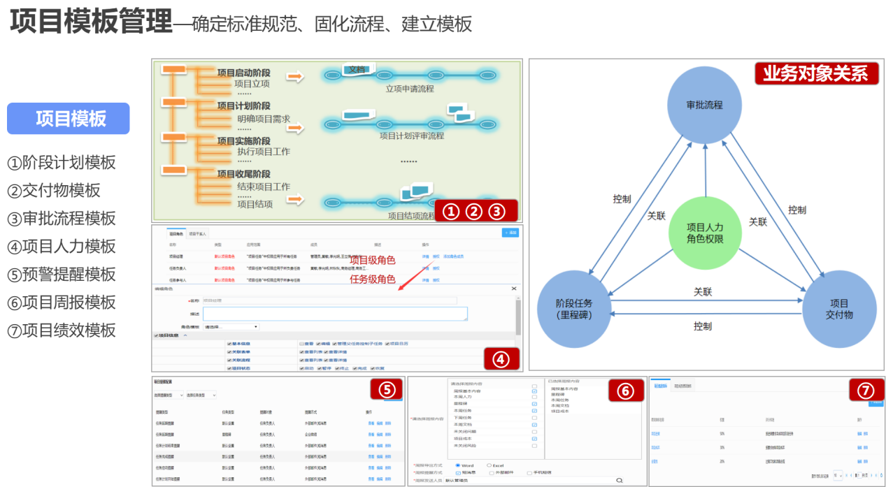 在智能制造装备项目中,规范项目流程体系是保证项目质量的首要任务。iMIS-PMX系统通过配置贴合企业个性化业务的项目模板,将项目业务流程固化,并定义清晰的质量目标和活动,从而确保项目管理体系的规范性和一致性,从源头上提升项目质量。