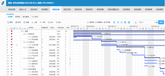 iMIS-PM项目管理系统可帮助项目经理快速建立WBS的任务分解结构和交付物,把资源和时间都对应起来, 保证每个成员都知道自己应该完成什么样的任务,时间粒度可精细到天;以甘特图形式直观显示项目计划,支持多级计划形式:里程碑计划、1/2/3/4级项目计划;支持“父任务控制子任务完成时间”,既确保父任务时间节点的刚性要求,又可在子任务计划安排中保持一定的灵活性。