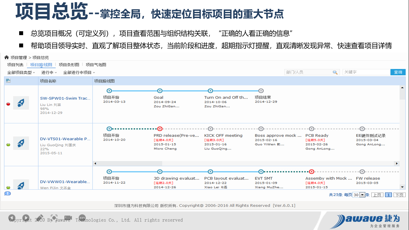 良好的项目管理体系对企业的高速运营和获得持续竞争力发挥着强大的支撑作用。因此,以技术研发和技术创新为核心构建高效的项目管理体系正是各企业升级转型的加速器,正日益为众多企业决策者所重视,越来越多的军工科研企业迫切需要构建一套项目管理信息化平台,增强企业的核心竞争力。捷为iMIS-PM项目管理系统项目启动、计划、执行、监控和收尾的整个生命周期,覆盖进度、质量、成本、资源、风险等项目管理的各个要素,为军工型号研制在进度计划管理上提供优秀的管理思维与管理工具,是对军工科研领域现有信息系统的有效补充。